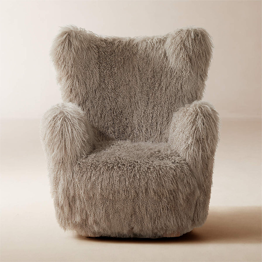 Classic wing accent chair is framed out in and wrapped entirely in sheepskin. Finished with...