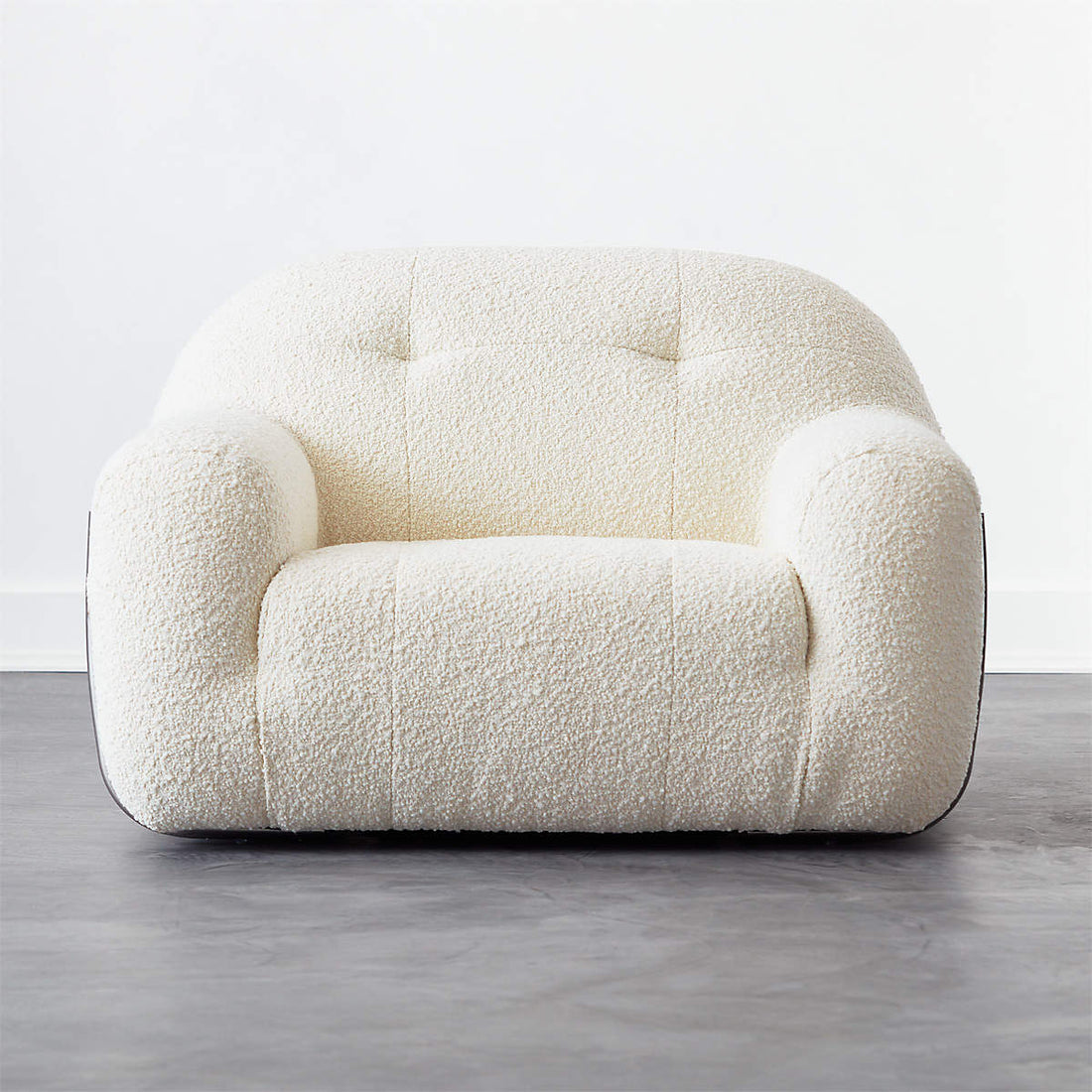Curvaceous design is wrapped in a creamy ivory boucle that brings soft texture and dimension...