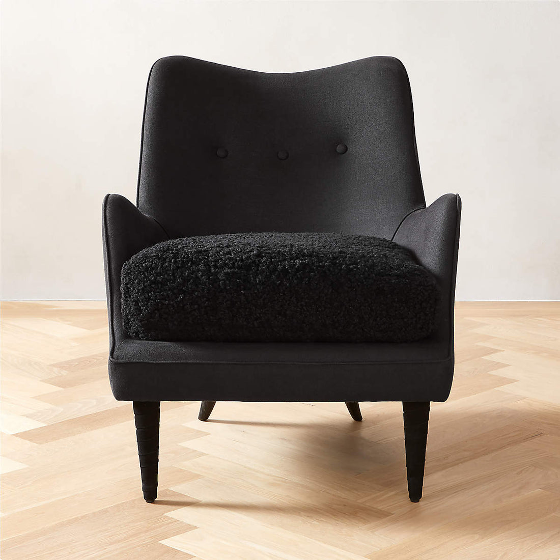 This black linen chair takes a conventional silhouette and flips it on its head—and by...