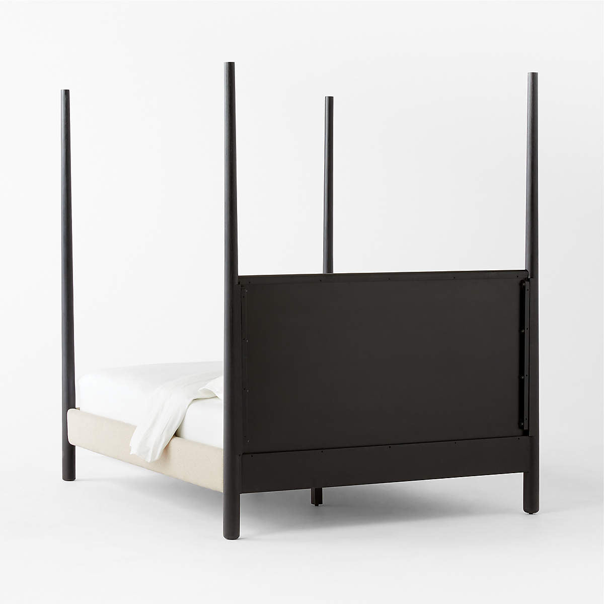 Arcata 4-Poster Black Wood and Ivory Upholstered Queen Bed