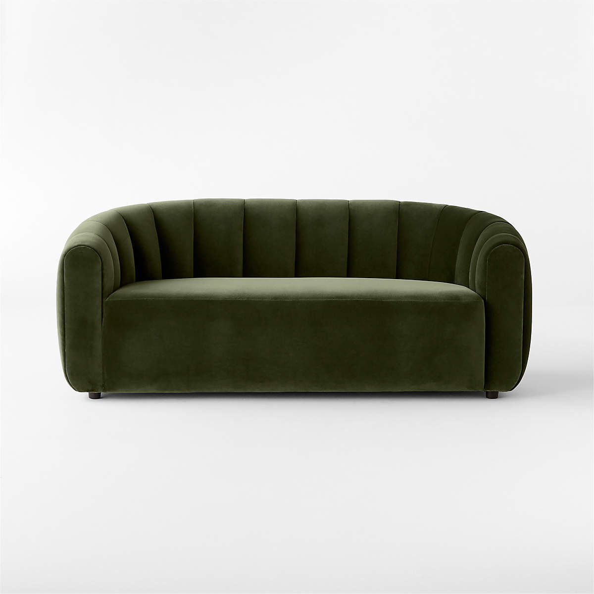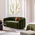 Channel-tufted in rich green velvet, deco-inspired loveseat makes a vintage statement wherever it sits. , loveseat looks good from every angle