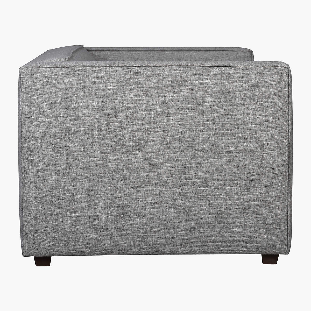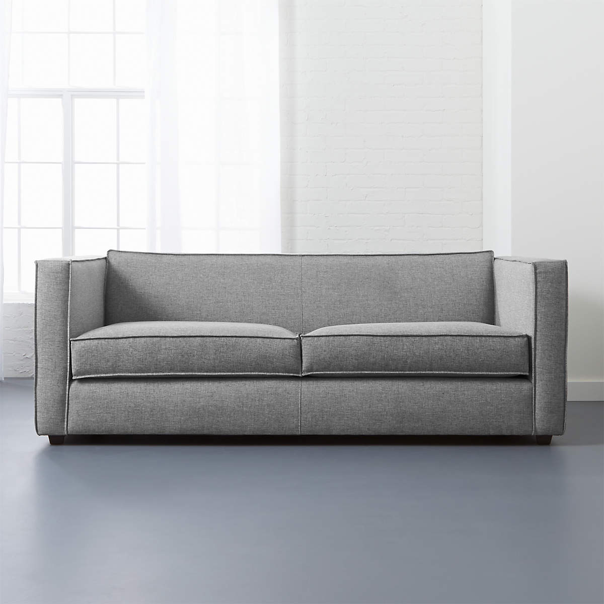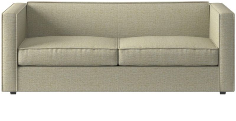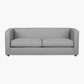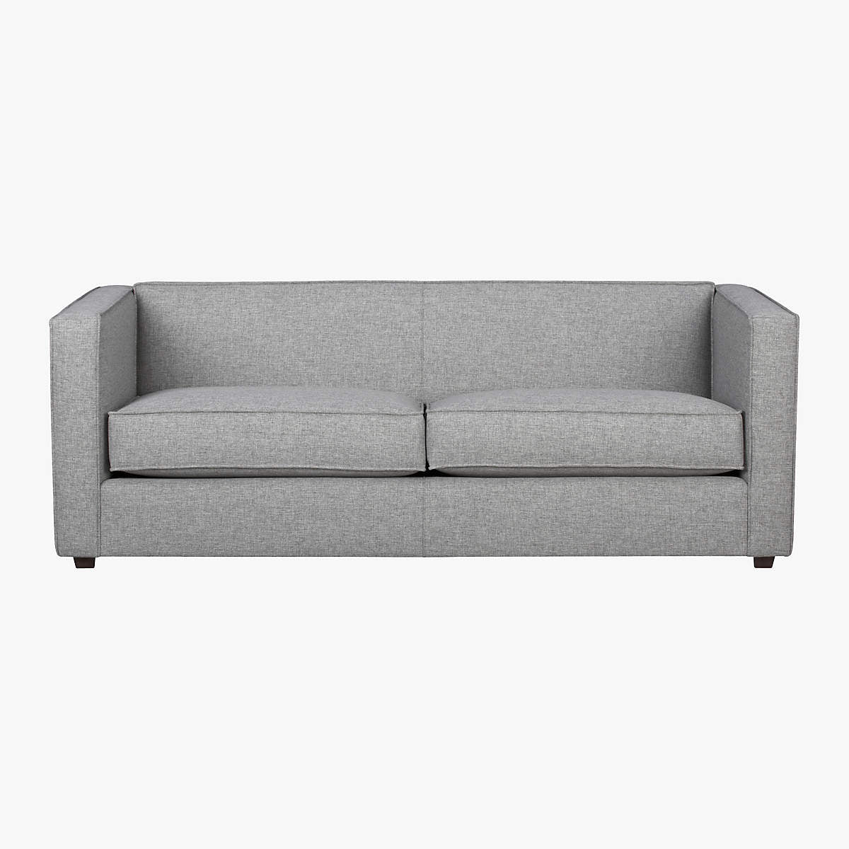 Sheltering club sofa turns tradition on its edge. Compact two-seater sofa to the nines with exaggerated flange that outlines boxy design. Love the impromptu feel of the intentional seat cushion overhang and super comfy back that curves to relax/support just where you need it