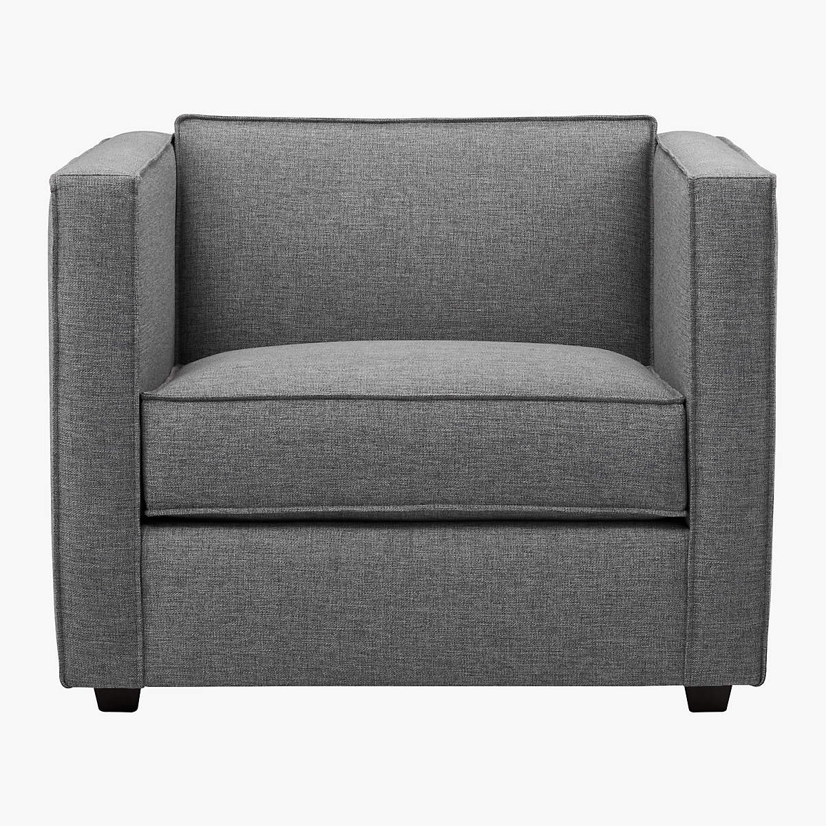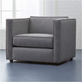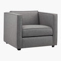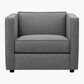 Our popular club chair squares up refined new proportions, scaled down ever so slightly with a fresh attitude. Exaggerated flange outlines boxy design that says 'this is my space.' Love the impromptu feel of the intentional seat cushion overhang and super comfy back that curves to relax/support just where you need it.