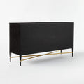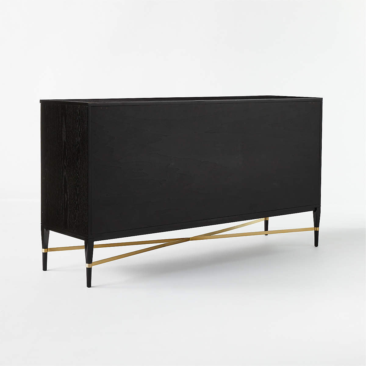 The slender lines, fine veneers and architectural detailing are just as elegant today as they were when first introduced in 1954. Beautifully crafted wood dresser features ebonized oak and brass crossbars and hardware—thoughtful details and sculptural influences that are stunning in their simplicity.