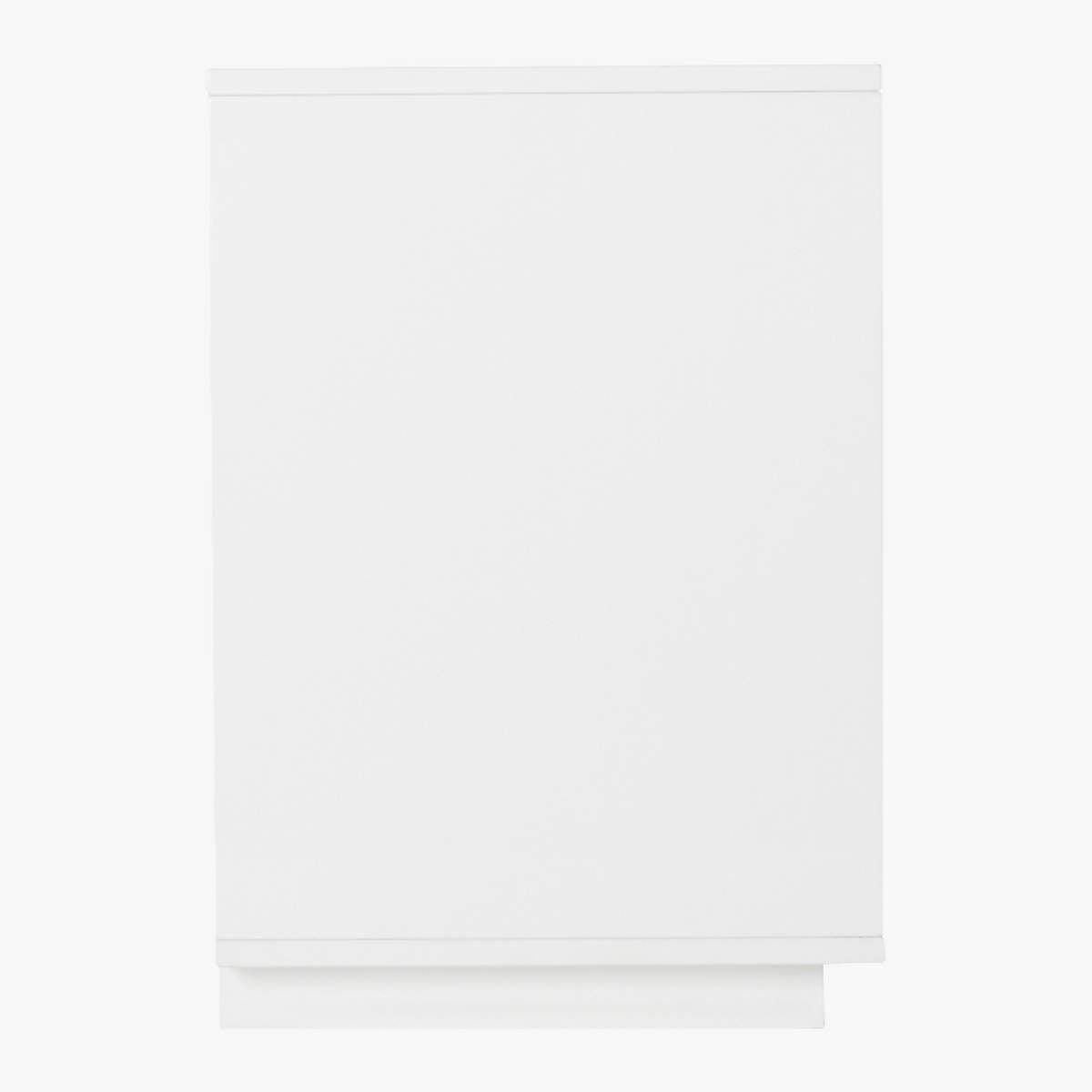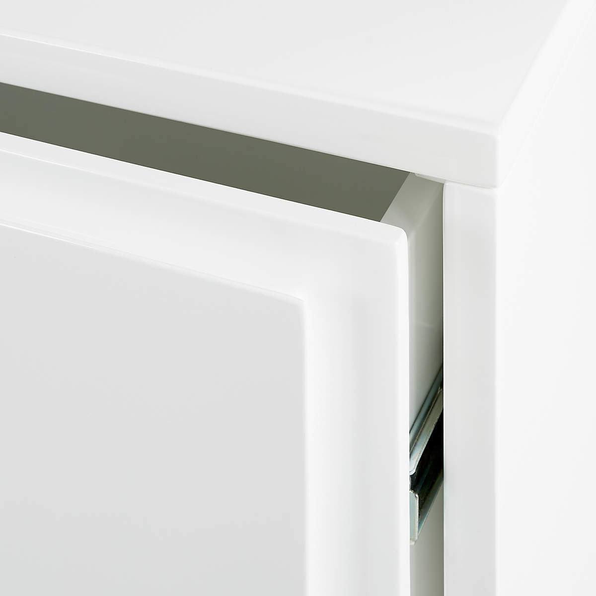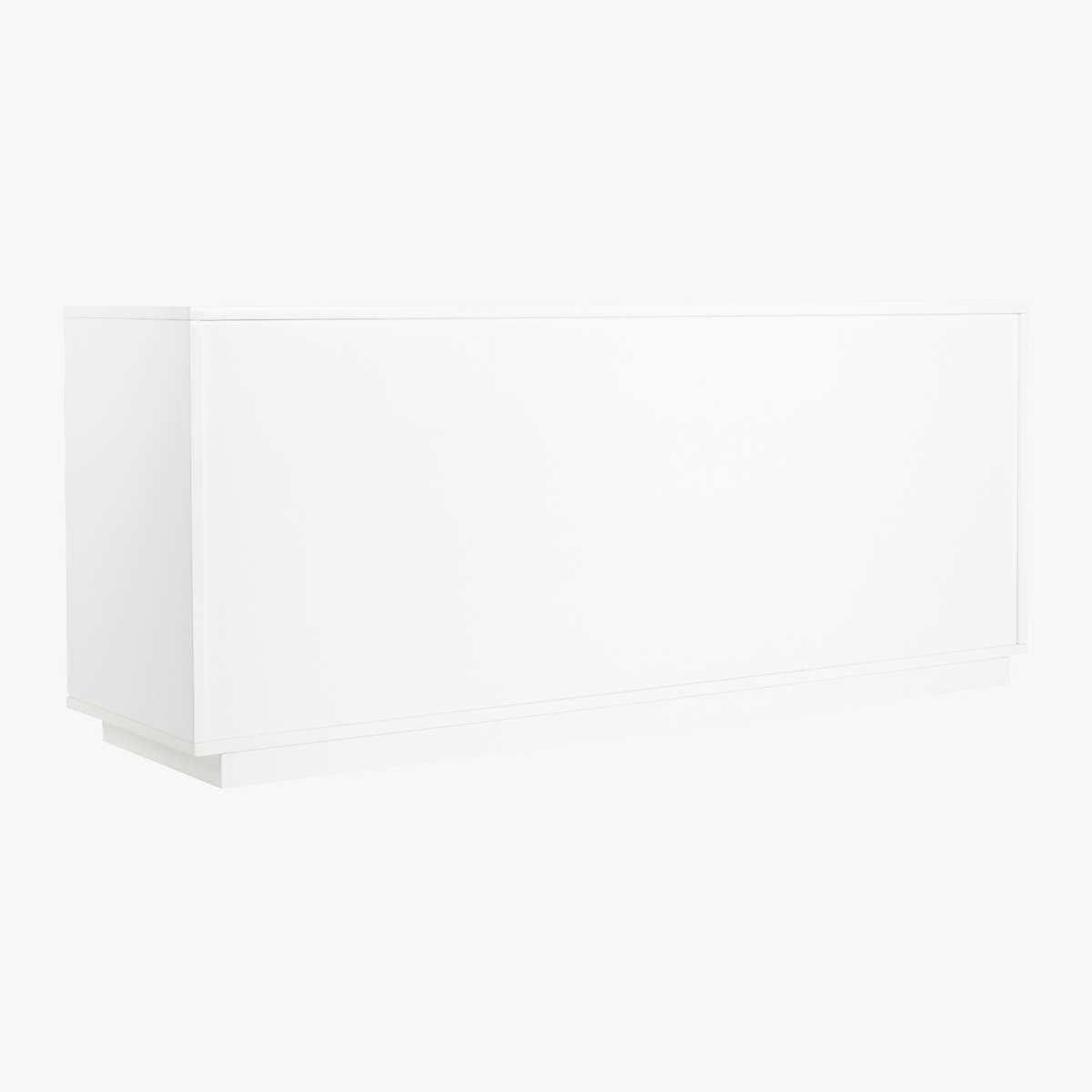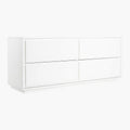 Minimal dresser takes a modern turn in glossy white lacquer. Four roomy drawers cut a clean line with recessed drawer panels rather than traditional hardware. Slim plinth base keeps it sturdy and sleek.