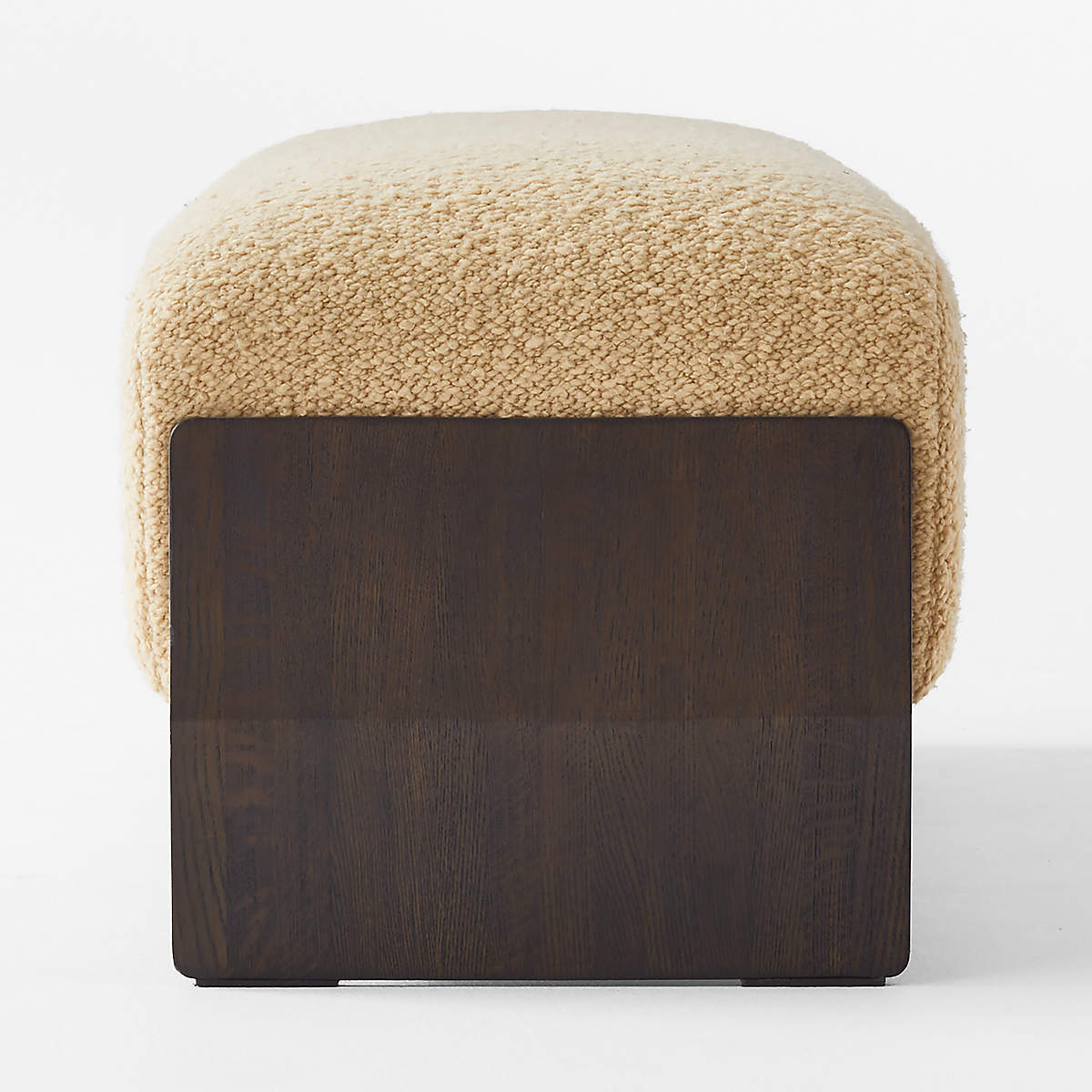 Hugo 55" Light Brown Boucle and Dark Wood Bench
