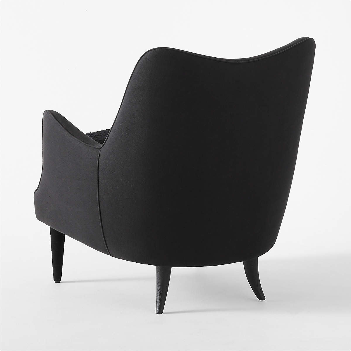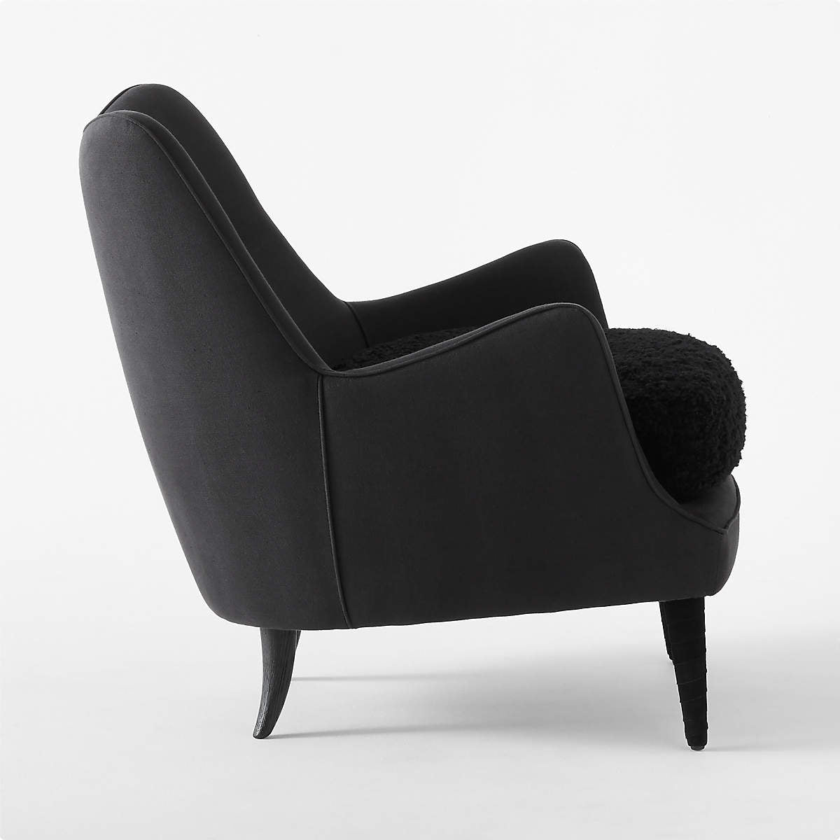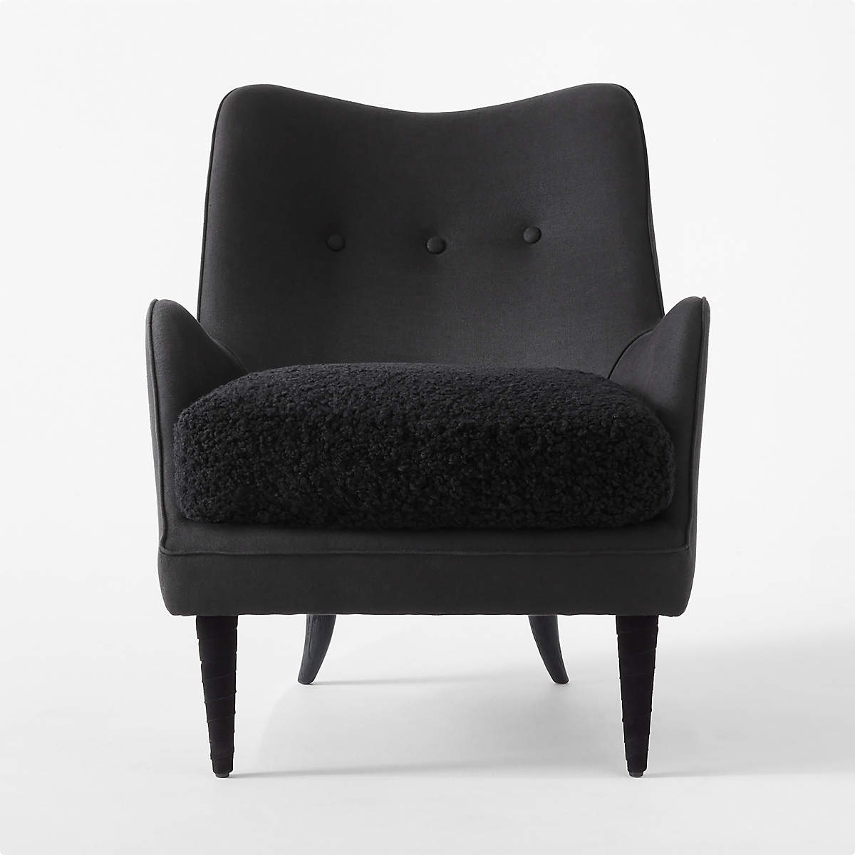 This black linen chair takes a conventional silhouette and flips it on its head—and by head, we mean a seat cushion upholstered in real shearling and a frame of wood. A variation in feet only adds to the charm, with the front wrapped in black suede and the back shaped like horns