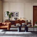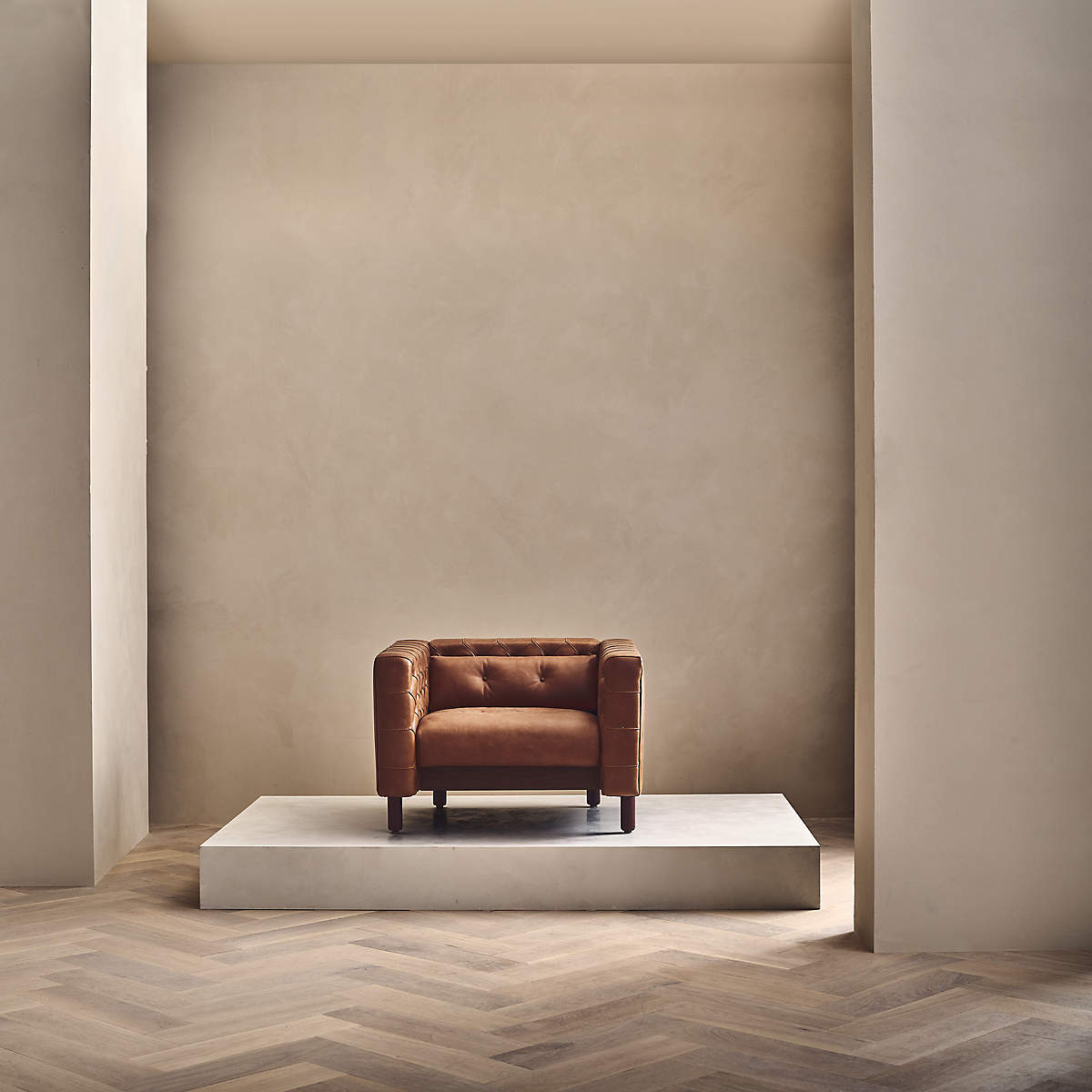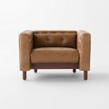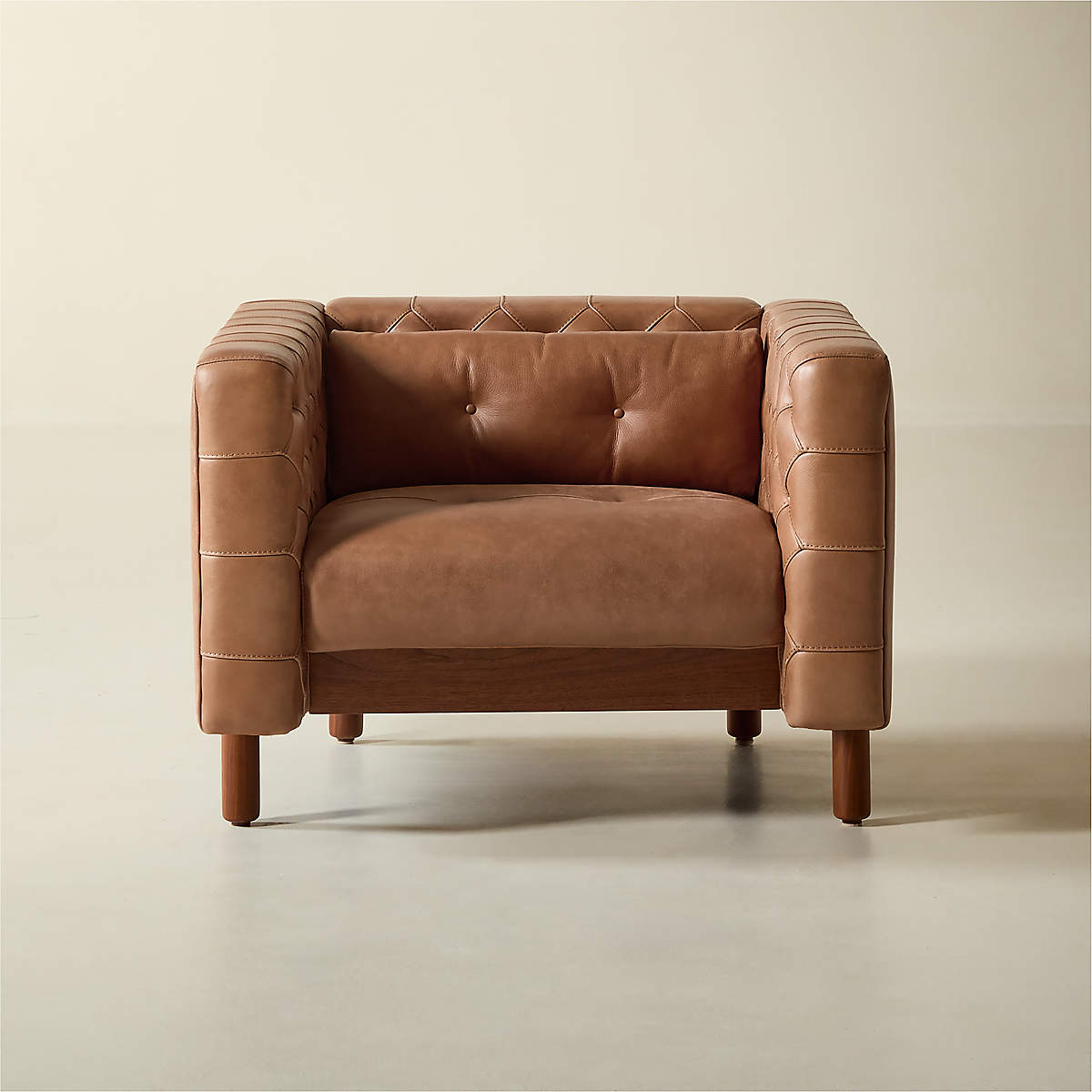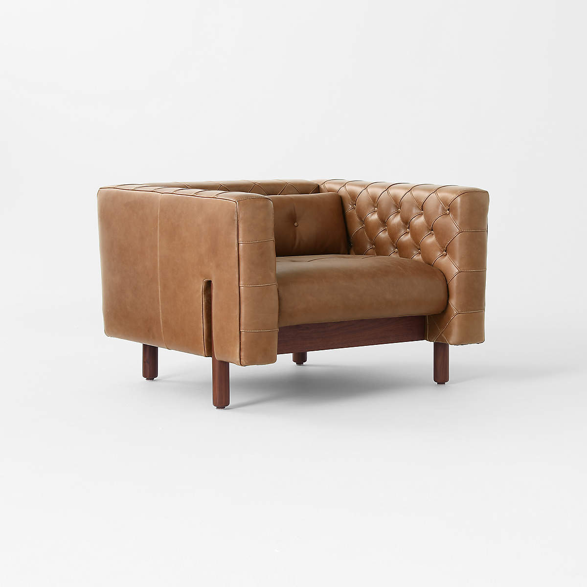 Now, a modern classic returns with the same spirit of the original design, reimagined in full-grain saddle leather. Semi-aniline cowhide is gently polished for a smooth hand that showcases its natural markings. Period-authentic details include hand-pulled button tufts on the interior sides and cushions, along with the inset walnut legs.