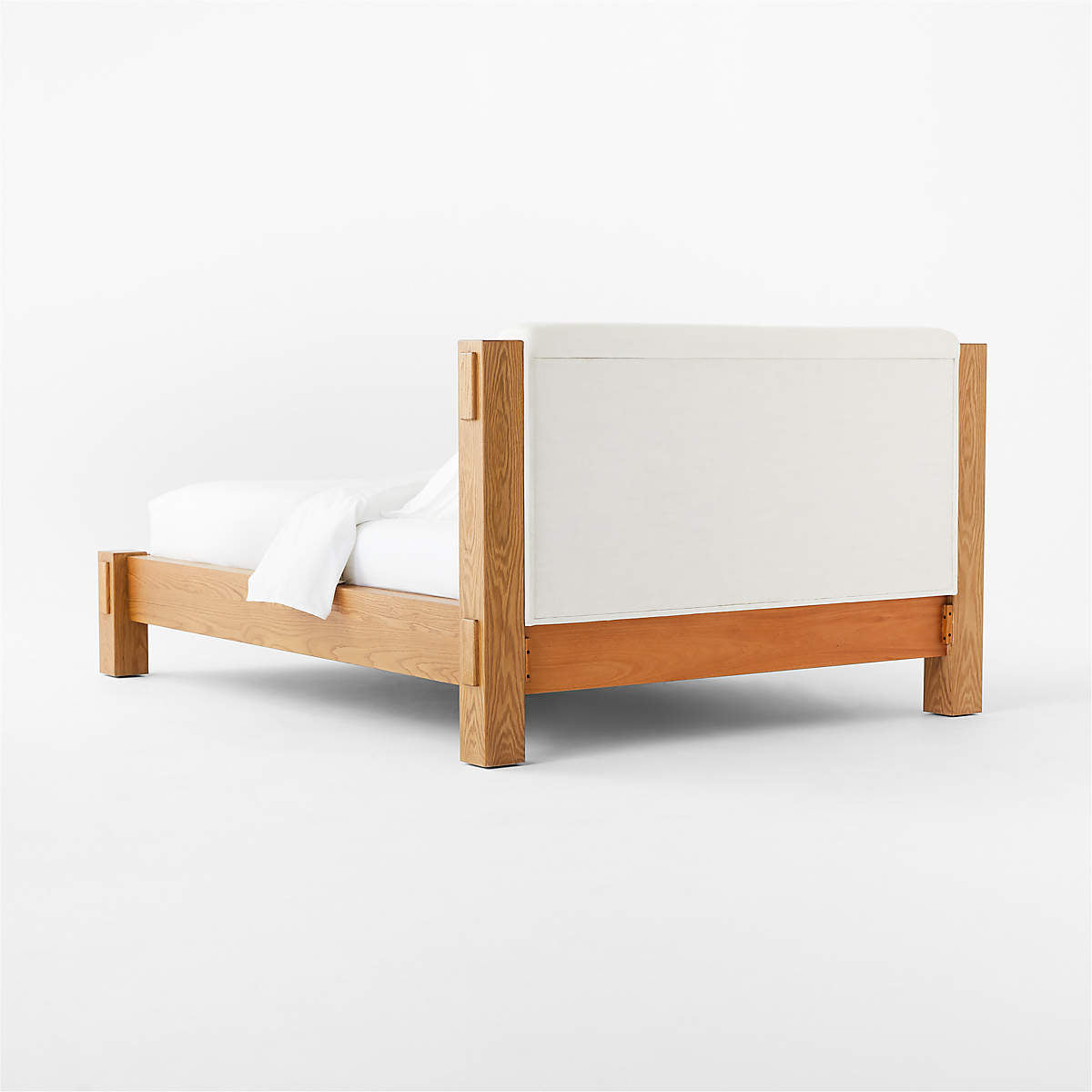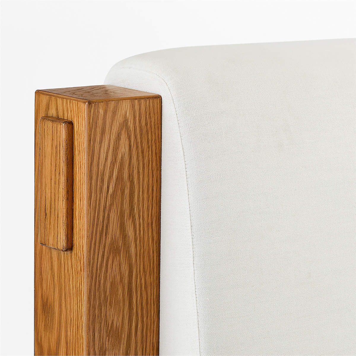 Built On A Large Scale, Upholstered Platform Bed Is Designed To Define The Primary Bedroom. Crafted From American White Oak, The Bed Is Marked By Exposed Joinery On The Corners Of The Head- And Footboard. Ivory Linen Upholstery Cushions The Headboard For Bedtime Lounging